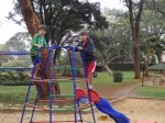 The boys did well on the flight except that there was little sleep on the London to Nairobi leg. We arrived this morning at 6am Kenya time (We are 10 hours ahead of Pacific Standard Time) – flew through immigration and customs and then squeezed between our luggage in a taxi (shuttle van) to the Mennonite Guest House. The boys immediately headed for the small playground and the beautiful Acacia trees and the sounds of the welcoming birds caused Amy and I to take a deep breath and celebrate together with a tired but grateful sigh – “We made it!”