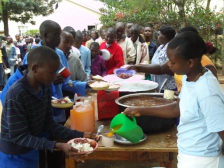 youth camp lunch line