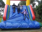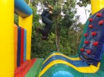 Then the big surprise! A restaurant built by a man from Belgium had imported a bounce house that made the boys (let me say – young men, because Joshua’s friends are 14-16) eyes open wide and their feet went into full motion to see this amazing “machine”. What a blast… to watch these three Kenyan young men and one American jump and bounce without inhibition. Soon they figured out what the bounce surface and their own abilities were capable of. There were daring leaps from the top of the “rock wall” and flying flips and just all around knocking around as boys will do. After they were exhausted we entered the Kerio View restaurant for some French fries and a soda.
